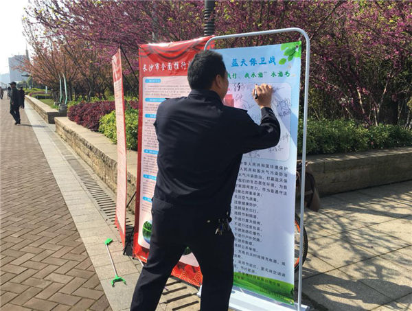 该活动在浏阳河边开展,社区工作人员向过往的居民群众发放了关于“保卫蓝天,文明祭祀”的宣传倡议书。因为往年附近居民历年来都有在浏阳河边祭扫的习俗,此次宣传是为了让居民群众抛弃旧有习俗,保护环境,努力做到“移风易俗、环保为本,追思先祖、文明在前”。同时,居民都在“蓝天保卫战我践行、我承诺”的承诺书上签名。