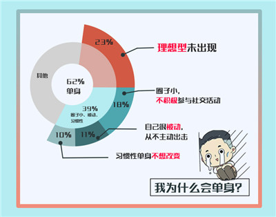 而在单身原因方面,调查发现,23%的单身男女因“理想对象未出现”而单身,其次为“圈子小,自己也不积极参与社交活动”(18%)、“自己很被动,从不主动出击”(11%)、“习惯性单身不想改变”(10%),可见大部分单身男女都是“被动单身”。深入调查发现,在脱单一事的态度上,有36.5%单身男女表示“感觉很难找到对象”,超两成认为“即使找到喜欢的人,但不擅沟通难以进入到恋爱阶段”,仅19%表示会积极的社交或相亲。