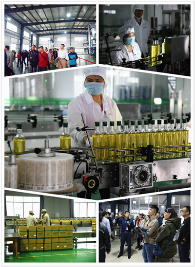 14日下午,随着最后一批参加齐云山登山节游客的抵达,所有来宾统一乘坐3辆大巴车出发前往第一站——江西齐云山油茶科技有限公司。成立于2010年的齐云山油茶公司是由齐云山公司投资超亿元,专业从事油茶种植、科研和产品深加工的大型企业,引进德国、瑞典、美国等世界上先进的油脂冷压榨、精炼技术和设备,专业生产高纯度山茶油,年产齐云山高纯山茶油3万吨,是目前国内产能位列前茅的专业油茶加工企业。