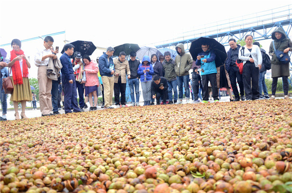 在成功登顶838级台阶的阳岭之巅后,大家驱车来到了江西齐云山食品有限公司占地105亩,建筑面积50000余平方米,固定投资超过一亿元,年产3.5万吨南酸枣系列食品的新工厂。亲眼见证了南酸枣从收购、分捡、清洗、预煮、去皮、核肉分离到制浆、烘干、成形、包装的所有生产过程。齐云山公司规范透明的生产过程,让所有在场的人连连称赞。