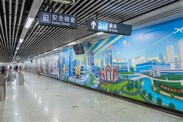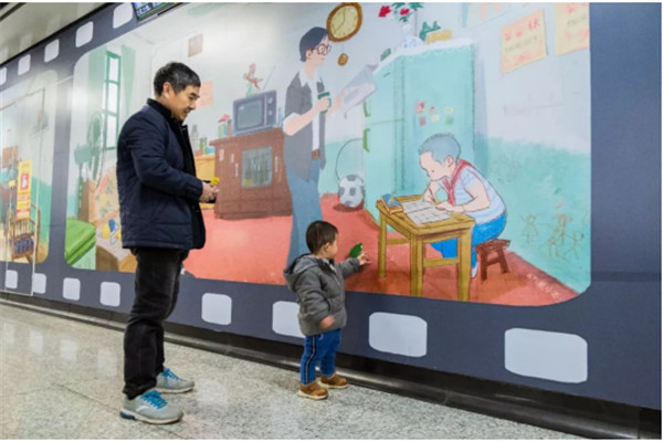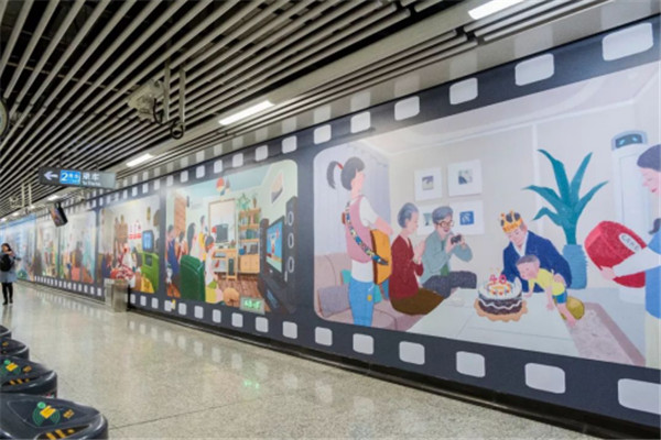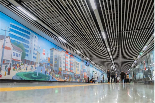 细看长沙大道地铁站厅,两侧墙面用巨幅插画描绘出改革开放来雨花区的变化,当40年的历史画卷徐徐展开,改革开放的春风依然温暖如初,“春天的故事”依然记忆犹新…