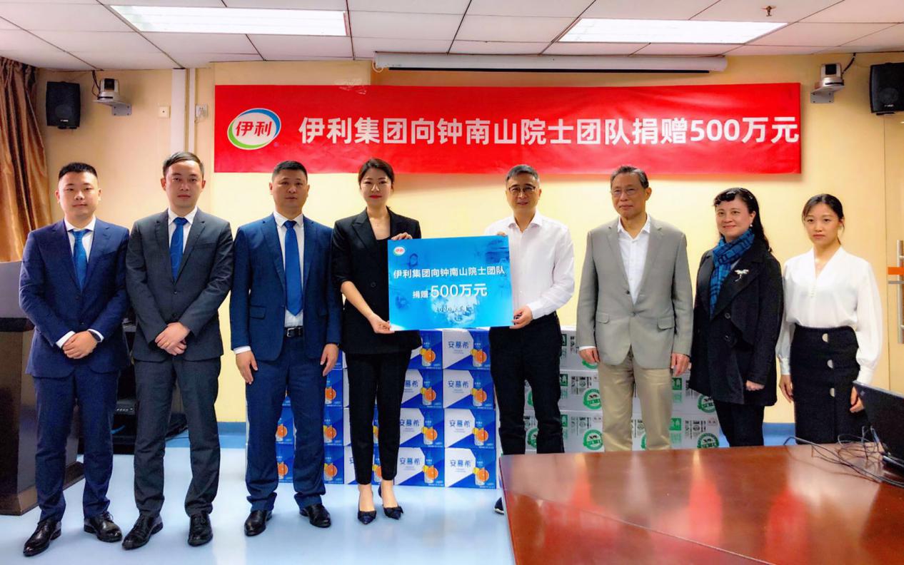 伊利集团代表向钟南山院士(右三)团队授予捐赠牌