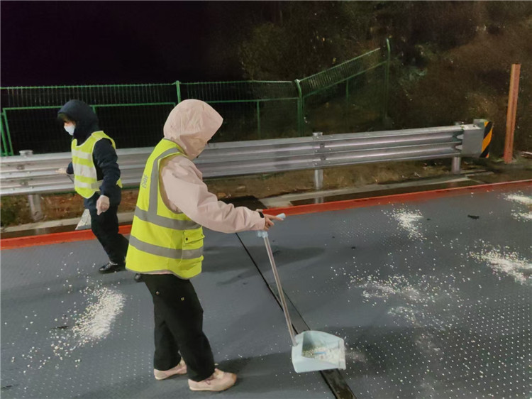 依据联合制定的抗冰保畅应急预案,各单位进一步明确了交通疏导、物资保障、旅客安置等关键环节的责任分工与处置流程。自19日起,收费站主动为养护工区应急抗冰人员腾出房间,提供食宿保障及临时休息区。20日傍晚降雪后,应急预案即时启动。按照交警部门指令,石亭、渌口南收费站迅速对“两客一危”及水产品运输车辆实施入口交通管制。收费人员耐心做好劝返车辆司乘的解释工作,传递“生命至上、安全第一”的理念,从源头管控行车风险。