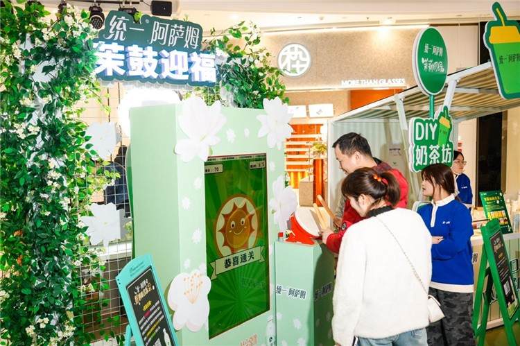 创意体验区则满溢着治愈气息,成为安放美好心情的一隅。茉莉工坊内,市民们围坐一堂,或拾取新鲜茉莉装入锦囊制作香包,让清雅花香萦绕身旁;或手绘风铃寄语新年,将心底的祝福化作笔下的斑斓色彩,用亲手制作的小物什锁住跨年的温馨。DIY 奶茶坊中,以低糖的统一阿萨姆茉莉奶绿为基底,搭配琳琅满目的奶茶伴侣,每一杯特调都散发着诱人的香气,入口的顺滑口感与清新茉莉茶香交融,恰如“顺滑好心情”的生动注脚。