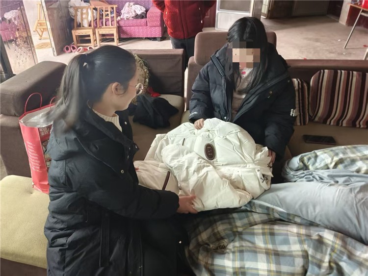 在长沙县安沙镇,慰问组来到困境儿童张某(化名)家中,为其送去羽绒服、裤子、鞋子等暖心物资。自2025年9月起,市未保中心接到区县转介,针对张某社交能力较弱、自我认知不清、生活自理能力不足等问题开展专项帮扶,先后派社工四次上门提供专业服务,围绕生活重建、信心提升、心理疏导等方向,给予系统化、个性化支持。慰问组一行与孩子及家人进行了交流,细致询问孩子近期生活、心理及安全状况,查看家中安全防护措施,鼓励孩子积极乐观、勇敢面对生活,并送上慰问物资。社工也结合孩子的年龄特点与发展需求,引导其思考未来方向,介绍合适的发展路径与可获得的资源,让孩子在物质关怀与情感温暖中,看见希望、拥抱未来。