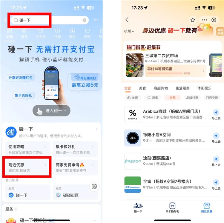 “以前付款要找付款码,现在手机碰一下就完成,还能自动减钱,太方便了!”线下购物的黄女士表示。参加“碰友节”的商户也覆盖了众多场景,菜场、超市、便利店、水果茶饮店等,市民在支付宝搜“碰一下”,即可查看附近支持使用的门店信息。