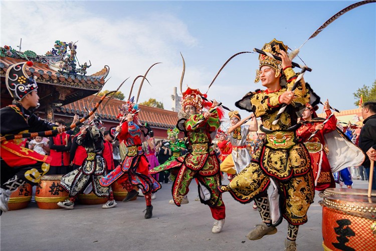 英歌舞舞者在潮州青龙庙会期间精彩亮相
