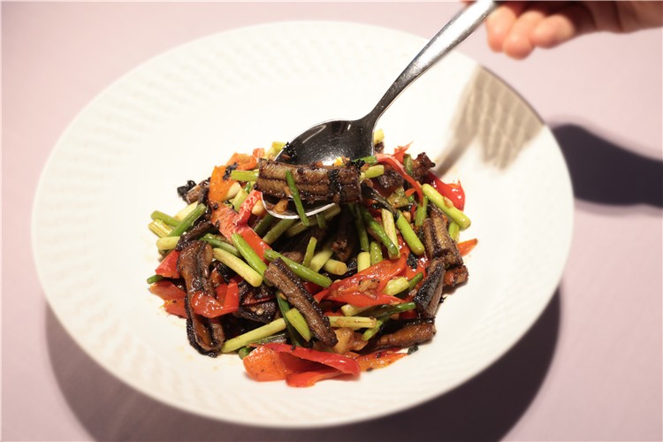 这一盘老树红椒炒洞庭毫捕鳝鱼,正是南景写给春天的一笔浓墨重彩。