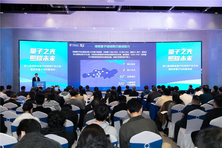 会上,中国电信湖南公司(以下简称“湖南电信”)与省科技厅、省科协等单位联合发布湖南量子城域网,标志着湖南在量子信息基础设施建设领域迈出关键一步,为全省数字经济高质量发展筑牢安全屏障。
