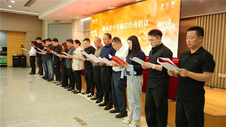 在项目发布环节,多项重磅举措正式亮相:老字号产品集聚——长沙市内免税店老字号国潮中心项目启动,标志着老字号产品将借助免税渠道拓展新零售空间;“老字号出海”计划发布,旨在推动湖南老字号品牌走向国际市场;湖南卫视国际频道老字号青春创歌综艺节目长沙赛区项目同步启动,将通过年轻化表达方式提升老字号在青年群体中的影响力。此外,协会还发起了诚信经营倡议书,号召全体老字号同仁坚守匠心精神,擦亮金字招牌,共同维护老字号的信誉与形象。
