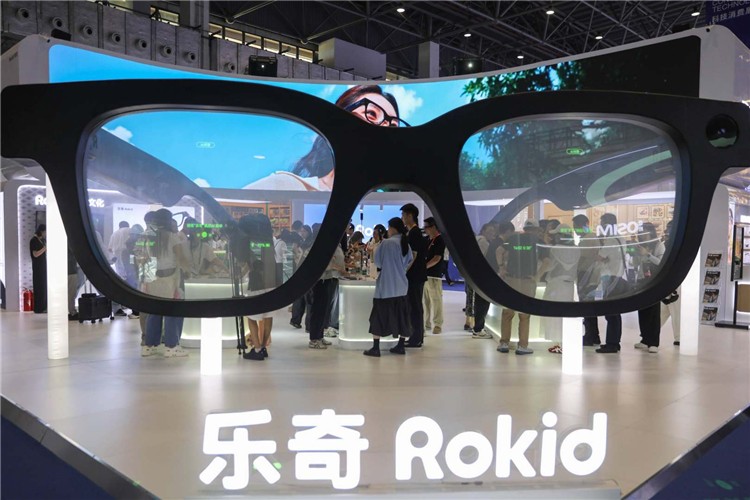 乐奇Rokid展台上展示的AI眼镜重量仅49克,支持拍照录像、智能题词、89种语言翻译、实时导航、AI问答、“看一眼支付”、会议纪要等功能