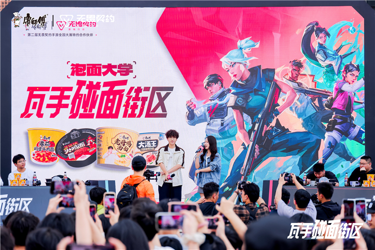 作为第二届无畏契约手游全国大赛的特约合作伙伴,康师傅此次跨界联动腾讯游戏与电竞领域的头部资源,将游戏IP与美食体验深度结合。活动选址长沙这座网红城市中的人气标杆街区——步步高梅溪新天地,围绕“泡在一起康师傅”的主题,为瓦罗兰玩家打造了一场专属的线下狂欢。
