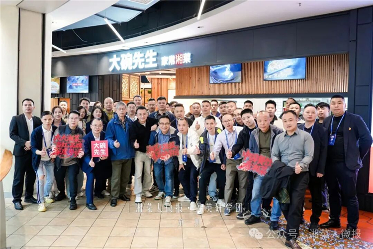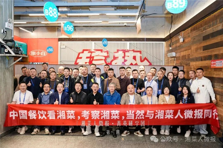 从精致的院落转身,田小狗的饭店又把“土味”做到了极致。从晴溪到田小狗,变的是风格与定位,不变的是团队对于美学与文化的深刻理解。在田小狗的饭店暖黄色灯光与氛围里,有对食材特色与品质的展示,有山野农家朴实场景的精致呈现,有浏阳地方文化的理解与提炼。当然,除了这些视觉上带来审美影响之外,更让学员们印象深刻的是整个团队的状态与氛围。这种拿捏得当的服务热情、快乐从心底油然而生的工作状态,是寻常餐厅难以做到的。在“到田间去”朴实环境里,品牌负责人温柔讲述一个又一个来自团队和创始人的故事,分享来自“田小狗”的独特经验。2004年从株洲起步的大碗先生,到现在拥有直营门店超200家,覆盖湖南及湖北、江西等地,大碗先生最厉害的地方,在于把“帮顾客省钱”刻进了品牌的基因里。当食材的市场价格降低,大碗先生的菜品售价也会做出调整;当顾客点餐,服务员会提醒“一人一菜”。一旦利润率偏高,就主动公告调价;主动明示菜品加工方式,让顾客清晰“餐厅现做”“半成品菜”和“预制酱菜”……大碗先生卖的不只是菜,而是“便宜+放心+不踩雷”的组合体验。品牌创始人谢自辉在分享时,核心理念就一句话——只赚取合理的利润,做“湖南人的家庭厨房”。“去厨师化”“标准化”的声音在餐饮流行很多年,但真正做到的并不多。这个2018年创立的湖南餐饮品牌,真的凭借自研的炒菜机器人做到。当普通餐饮人还在为“是否使用炒菜机”而犹豫时,霸碗已完成了三次技术迭代后,不仅大大降低了维修率,更帮助品牌实现了巨大的跨越——2025年9月,霸碗门店突破1000家,成为湖南餐饮的首个千店品牌。“机器炒出来的,和人工炒的,顾客真能吃出区别吗?”带着这样的疑问,研学团走进霸碗的研发中心,当一碗碗热气腾腾的小炒菜被端出来,才让人明白,“标准化率95%,口味全国统一”原来不只是一句口号,而是眼前的事实。而品牌创始人袁庆宏分享给研学团的,不仅是对市场的观察和做餐饮的经验,更是一种敢于创新的观念和意识。一句“全是加盟,没有直营”,支撑这份豁达与松弛的,其实是另一种精准的投资眼光。从衡阳走出的“老刘烧烤”,再到如今门店发展足迹延伸至长沙、广州、深圳热门品牌“串小白”,他创造的不仅是超1000桌的排队纪录,还在烧烤界掀起了一阵“鲜货风”。研学团走进串小白门店最直观的感受,除了敞亮热闹的环境之外,一定绕不开“趁热吃”。无论是员工们快步上菜的状态,还是时时响起的“烧烤趁着吃”的叮嘱,亦或是门店处处可见的元素,都可见串小白对于食材的重视和对自身产品的自信。从“体育老师”到“餐饮人”的尹向平最常说的一句话,也同样是“趁热吃”,他始终认为,想做好餐饮生意,没什么门道,首先得是好食材。他有一句极其朴实坦诚的话,“从来没有强调我是鲜货烧烤,我做的是好货烧烤”。除了食材,他也分享了自己的选址经验,不选热门商圈,而是选热门街区没人要的“背面”,租金更低、好停车。门店位于长沙北二环附近的谢老九,位置不算好找,甚至藏在一片树荫之后,鲜少做线上营销,却能做到饭点排队。品牌名字里带着工业时代的粗粝感,却藏着湘菜最质朴的味觉密码。学员走进店内,没有精致的装修,没有复杂的菜单,看到的是土菜最朴素的真理:不超过28小时的新鲜食材。