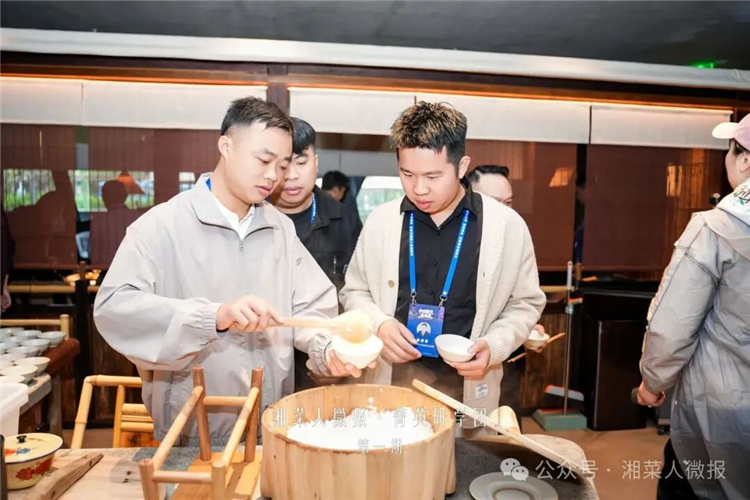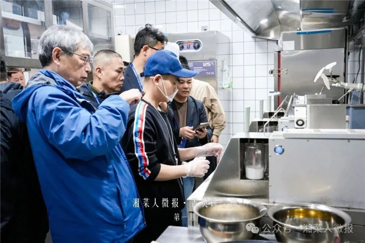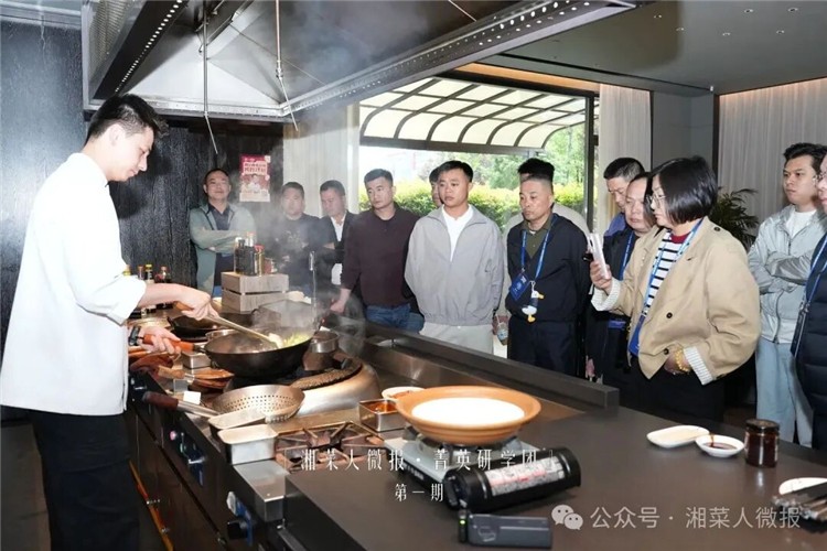 供应链、人才等问题如何解决?国外开店会踩哪些“坑”?味上品牌创始人刘晋伍现场回答了诸多疑问:特色食材从湖南发货,以保证湖南纯正风味,部分生鲜食材本地采购,强调品质和新鲜,他的这种“不妥协”,反而成了最大的竞争力;而他还用关于“税务”的典型事例,对比了国内外开餐厅的诸多不同,为有“出海”计划的餐饮人提供参考经验。研学团的最后一站,走进龙牌湘菜研发应用中心。在这个超一万平的现代建筑里,龙牌正在从一个280余年历史的老字号调料品牌,转型为湘菜标准化的“味觉芯片”,为餐饮提供全套调味解决方案的供应商。走进龙牌湘菜研发应用中心,这里既有大厨现场烹饪经典湘味“豉香”回锅肉,更现场展示了来自当下主流品牌炒菜机器人的烹饪能力。在分享环节,龙牌味业总裁尚刚以“新消费周期湘菜味型的破圈”为题,分享了不少关于对当下湘菜市场的理解和经验。他指出,想要做好餐饮,没有捷径可走,也不是单点比拼,而是考验自身的综合实力,要系统制胜。三天行程中,每一个站点最值得期待的,都是与创始人面对面环节。研学团成员们的问题总是直指要害:“总投资是多少?多久能回本?”“一天的营业额能做到多少?”“市面上到底哪家炒菜机器人最好用?”没有客套,只有真实的经验分享。除了实打实的“干货”之外,一位学员在分享时还提到,本次行程里最大的收获是各位品牌创始人的人格魅力,以及来自天南地北、不同区域、不同类型的组员之间的交流与认知。