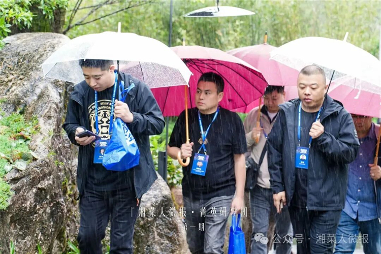 长沙的餐饮永远不缺创造力、话题性和参考性。4月22日,由湖南省餐饮行业协会指导,《湘菜》产业研究院、湘菜人微报主办的“湘菜人微报·菁英研学团”首期活动圆满收官。来自北京、广东、上海、海南等全国各地的50名优秀餐饮人走进长沙嘻院、田小狗的饭店、大碗先生、霸碗、串小白烧烤、谢老九肉联厂、壹双好手、味上湘菜馆以及龙牌湘菜研发应用中心九大站点,在十足的烟火气中感受湘菜魅力,在与品牌创始人的对话交流中拆解湘菜流行密码。这不是一次走马观花的“探店打卡”,而是一场带着问题来的深度拆解。从6000㎡里的自然风光与主题场景,到人均30元的社区王者,从机器人炒菜的千店神话,到坚持风味不改良出海的湘菜勇气——研学团一路看、一路问,试图拆解湘菜市场红火的逻辑,探索湘菜品牌背后那本“别人抄不走的独家秘籍”。游学首站走进嘻院,这个斥资上千万打造的6000平米院落,如今已经长沙院子餐饮的流量新秀。它依山而建,充分利用地势落差,绿树掩映,清水溪流穿园而过,形成高低错落、贴合自然的独特格局。当菜品本身难以在当下餐饮市场构成绝对优势,嘻院则瞄准空间体验,这种一季一景的做法,如今已是最重要的流量来源,带来丰富客流。即使雨天无法充分展示晒秋场景的风光与魅力,但嘻院利用绣球花打造的打卡场景,以及对溯溪、自然风光的充分结合,依然让走进嘻院的研学团成员们感到惊喜与震撼。