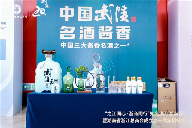 作为湖南本土名酒的武陵酒,以“见证者”与“参与者”的身份深度融入这场庆典。在活动现场,武陵酒精心布置了专属陈展区,来往嘉宾纷纷被陈展区吸引,驻足其间,聆听工作人员细数武陵酒与浙商群体的不解之缘。从早期浙商入湘创业时的宴席佳酿,到如今政企交流中的文化使者,这款湖南唯一的国家名酒,早已成为两地合作的隐形纽带。一位浙商代表感慨:“喝的是酒,品的是二十年同行的滋味。”