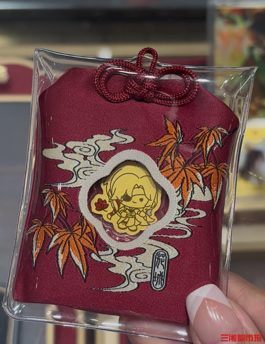 8月25日,王府井百货二楼集中了多家黄金店铺,其中,老庙黄金的柜台前围着不少小朋友。记者走近后发现,该柜台被国创动画IP“天官赐福”联名系列产品满满占据,转运珠、手机贴、御守、金钞等款式应有尽有。柜台内一整个红色底座上印有IP剧照,柜台正上方还陈列着该系列的套装礼盒。“现在买‘天官赐福’系列,都会送一个联名礼盒,里面赠送有IP明信片。”销售徐女士介绍道。
