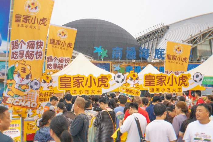 与众不同的是,本场比赛,来自“速冻星球”的速冻小吃大王皇家小虎,携自己的王牌产品——连续4年全国销量第一的皇家小虎烤肠前来助阵苏超,为比赛队伍加油鼓劲,让现场球迷踢个痛快,吃得畅快!