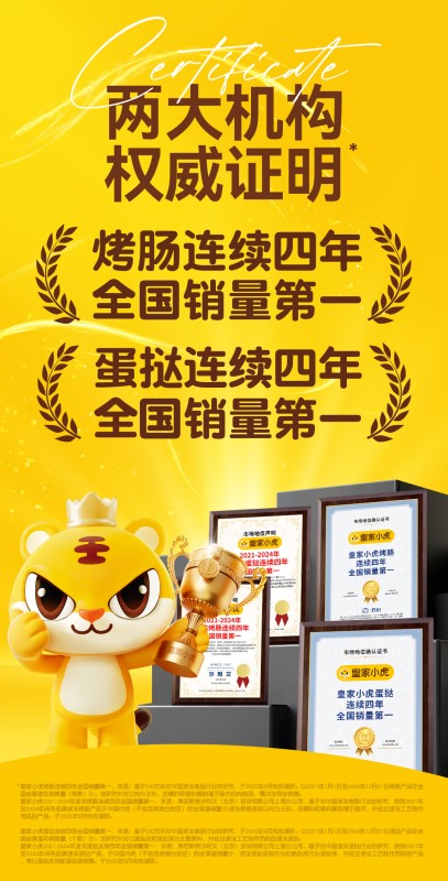 作为速冻食品全网销量第一品牌,速冻小吃大王皇家小虎致力于为中国大众消费者提供高品质的速冻食品,做用户的美好生活陪伴者。皇家小虎集食品研发、生产、销售于一体,凭借强大的品牌力与产品力支撑,在传统渠道与新兴渠道中,都具备显著的卖力优势,并受到了经销商、零售商与消费者的一致、广泛认可。截至2025年6月,皇家小虎取得了烤肠连续四年全国销量第一、蛋挞连续四年全国销量第一的成绩,皇家小虎品牌还荣获“2025年福布斯品牌大奖”“福布斯ESG先锋企业”等多项大奖。
