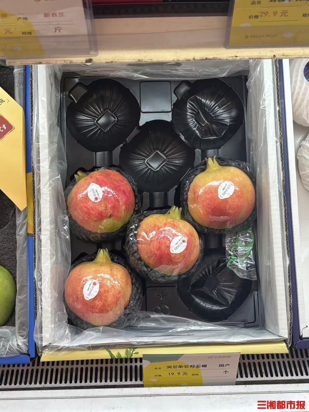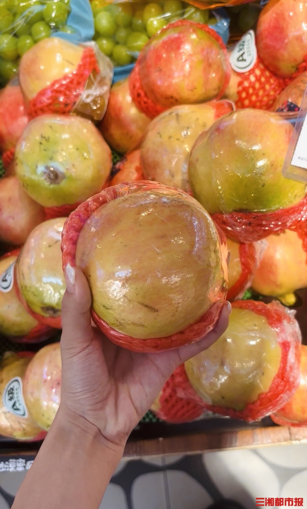 近日,记者刚踏入E佳鲜果(蔡锷北路店),货架上一盒突尼斯软籽石榴格外引人注意。每个售价19.9元,已卖出大半盒。外皮品相稍逊的石榴价格相对便宜些,一颗算下来约5元。称重台旁,店员正专注地用手剥开石榴,分成一粒一粒装盒,“这是线上顾客订的,石榴最近刚上市,很多市民尝鲜。”