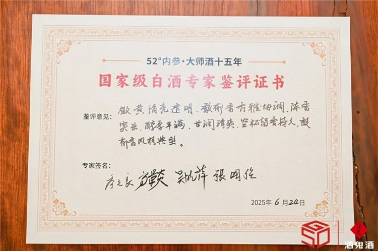 圈层营销的持久生命力,源于产品本身的硬核品质。作为中国酒业协会白酒年份酒联盟认证的首款十五年真实年份酒,内参・大师酒十五年以“真实、可溯、可感”的标准树立行业标杆。其酒体由酒鬼酒公司珍稀窖藏基酒勾调而成,其中超过20年基酒占比近50%,35年极品老酒占比高达17.37%,每瓶酒的外包装均清晰标注年份构成与认证标识,实现“看得见年份,品得出岁月”。