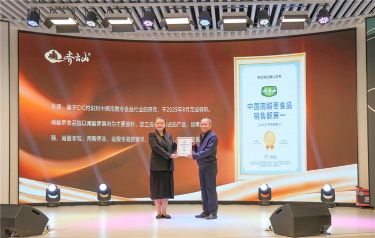 随后,活动进入南酸枣文化音乐节环节。在参观南酸枣文化展览馆及现代化生产线后,齐云山公司获授由CIC灼识咨询调研认定的“中国南酸枣食品销售额第一”市场地位证书。音乐节上设置了南酸枣相关非遗技艺比拼及赣南特色歌曲表演,现场观众参与线上互动评选出多个歌手奖项。