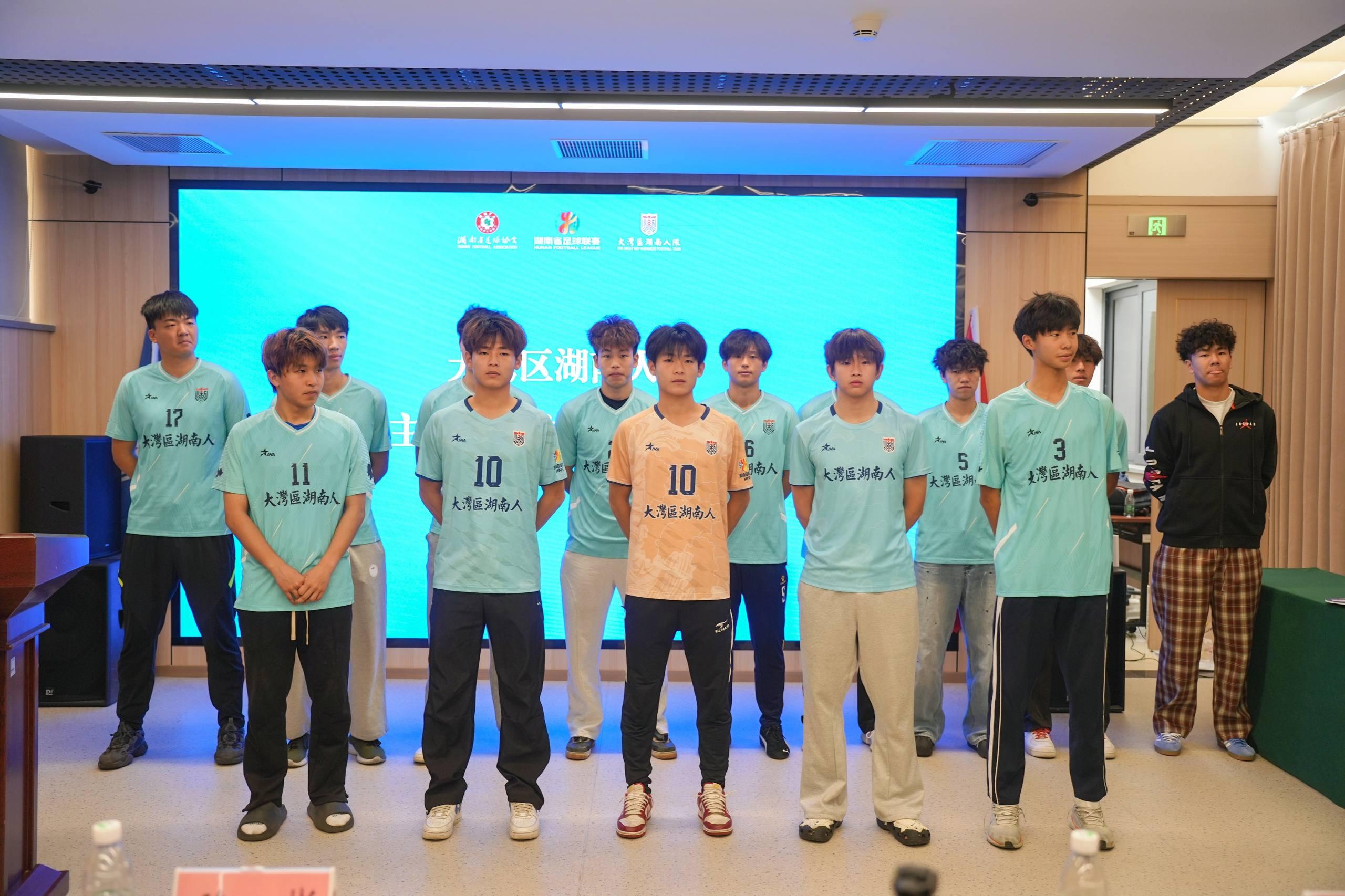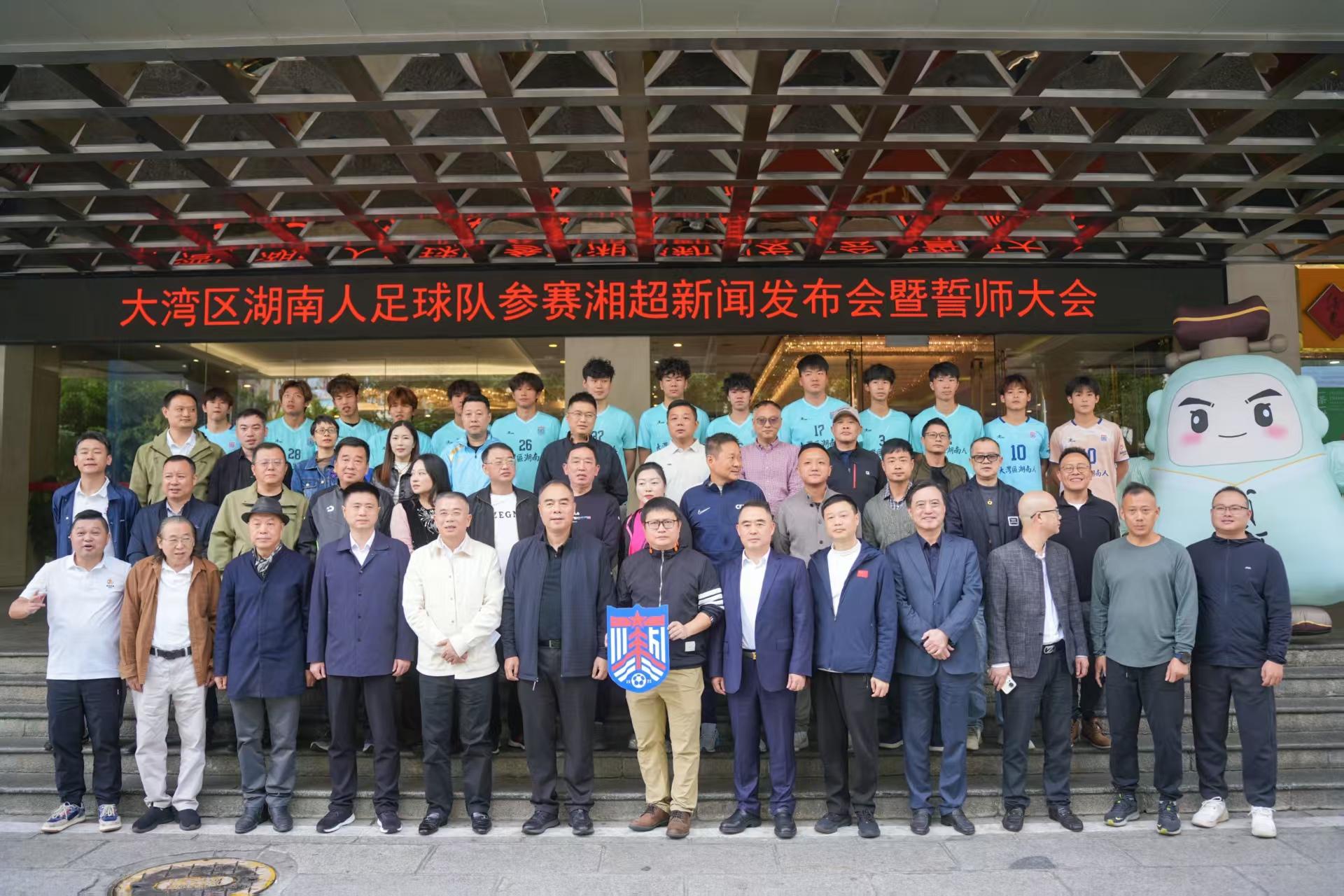 红网时刻新闻12月5日讯(通讯员 何冲)近日,大湾区湖南人足球队在深圳芙蓉宾馆正式誓师启航。这支以乡情为纽带的球队,将代表1300万在大湾区工作与生活的湖南同乡,加入“湘超”联赛的大家庭。球队以广州、深圳为枢纽,联动湖南14个市州与大湾区“9+2”城市群,致力让足球成为湘粤两省文化交融、经济互动的新名片。